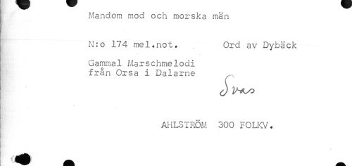 //// N:o 174 mel.not. . Ord av Dybäck //// Gammal Marschmelodi //// från Orsa i Dalarne //// t //// AHLSTRÖM 300 FOLKV. ////