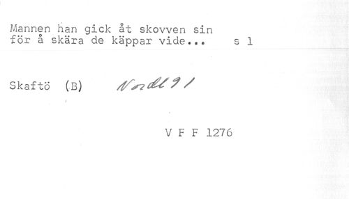 //// Mannen han gick åt skovven sin //// för å skära de käppar vide... s 1 //// Skaf tö (B) ^ //// /* //// * //// V F F 1276 ////