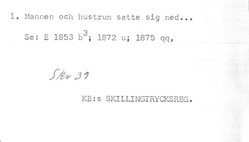//// 1. Mannen och hustrun satte sig ned... //// Se: E 1853 b^; 1872 u; 1875 qq, //// KB:s SKILLINGTRYCKSREG. //// t ////