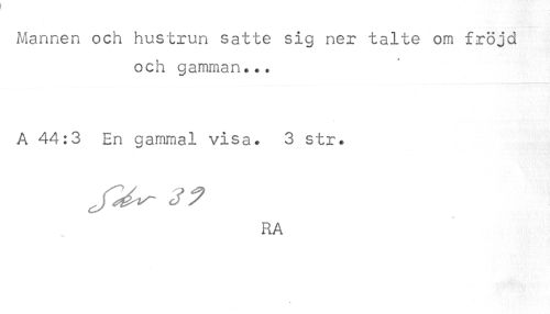 //// Mannen och hustrun satte sig ner talte om fröjd //// och gamman... //// A 44:3 En gammal visa. 3 str. //// RA ////
