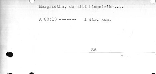 //// Margaretha, du mitt himmelrike.... //// A 80:13---i str. kom. //// RA //// K*' ////