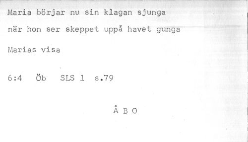 //// Maria börjar nu sin klagan sjunga //// när hon ser skeppet uppå havet gunga //// Marias visa //// 6:4 Öb SLS 1 s.79 //// i //// t //// i ////