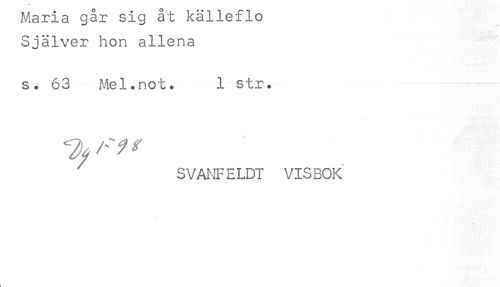 //// Maria gar sig Kcm^iiu //// Själver hon allena //// s. 63 Mel*not* 1 str. //// SVANFELDI VISBOK ////