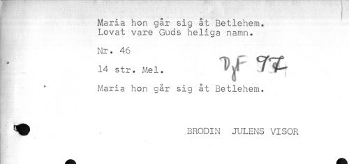 //// ... - - .. //// Maria hon går sig åt Betlehem. //// Lovat vare Guds heliga namn. //// K- //// Nr. 46 _ //// 14 str. Mel. ^ ^ Vl^ //// ' Maria hon går sig åt Betlehem. //// , ' ^ BRODIN JULENS VISOR ////