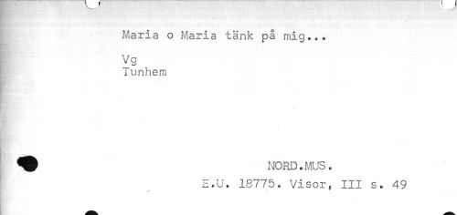 //// Maria o Maria tänk på mig... //// Vg //// Tunhem //// - //// * //// H. v //// ^ NORD.M. //// E.U. 18775. Visor, III s. 49 ////
