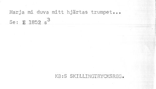 //// Marja mi duva mitt hjärtas trumpet... //// Se: E 1852 s^ //// KB:S SKILLINGTRYCKSREG. ////