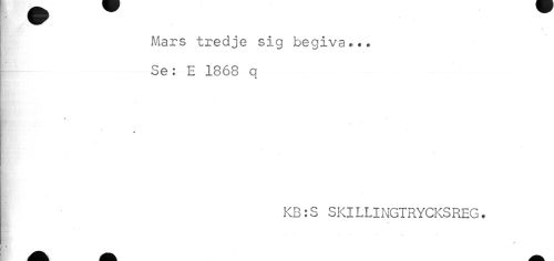 //// Mars tredje sig begiva... //// Se: E 1868 q //// * //// KB:S SKILLINGTRYCKSREG. //// - //// * //// * -* ? ////