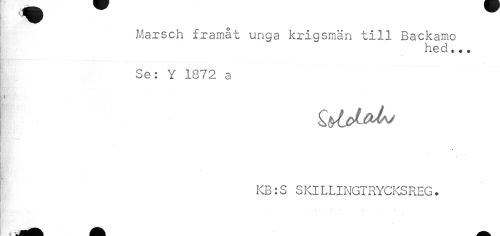 //// Marsch framåt unga krigsmän till Backamo //// hed... //// —.____ //// Se: Y 1872 a //// - //// [ . ' //// - //// KB: S S Kl L LI NGT RYCKS REG. //// * //// - — - . - ////