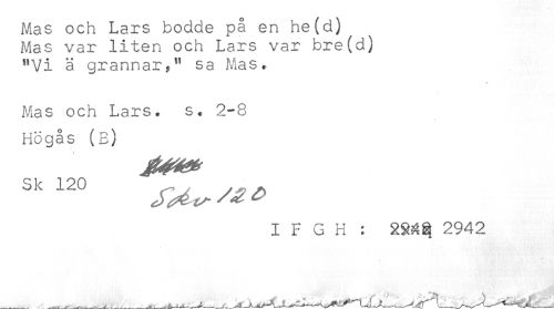 //// Mas och Lars bodde på en he(d) //// Mas var liten och Lars var bre(d) //// "Vi ä grannar," sa Mas. //// Mas och Lars. s. 2-8 //// Högås (E) //// I F G H : 2942 //// ___ ^^^____.......__^L^^L^ ////