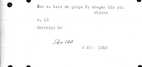 //// * åas o. Lars de gingo åt skogen för att //// skjuta //// s* 13 //// . //// Gryteryd Sm //// V FF: 1352 ////