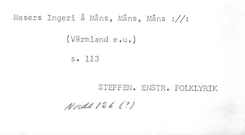 //// Masers Ingeri å Måns, Måns, Måns ://: //// (Värmland e.u.) //// s. 113 //// STEFFEN. ENSTR. FOLKLYRIK ////