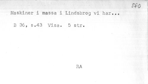 //// Maskiner i massa i Lindsbrog vi har... //// B 36, s.43 Visa. 5 str. //// t ////