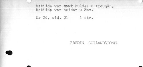 //// Matilda var hxixi huldar u trougän, //// Matilda var huldar u ömm. //// < //// ^ Nr 26, sid. 21 1 str. //// FREDIN GOTLANDSTONER ////
