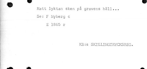 //// Matt lyktan sken på gravens häll... //// Se: F Nyberg c //// ^ E 1865 r //// KB:s SKILLINGTRYCKSREG. ////