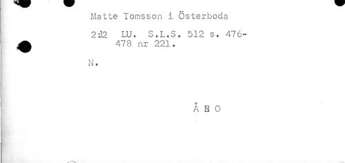 //// Matte Tomsson i Österboda //// 232 LU. S.L.S. 512 s. 476- //// ^ 478 nr 221. //// N. //// } //// ÅBO ////