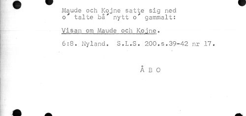 //// Maude och Kojne satte sig ned //// o^ talte bå" nytt o^ gammalt: //// Visan om Maude och Kojne. //// 6:8. Nyland. S.L.S. 200.s.39-42 nr 17. //// tt' * //// ÅBO ////