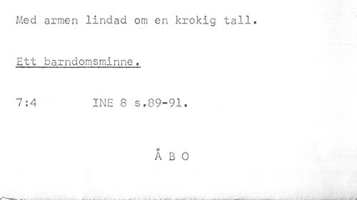 //// Med armen lindad om en krokig tall. //// Ett barndomsminne. //// 7:4 INE 8 s.89-91. ////