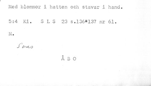 //// Med blommor i hatten och stavar i hand. //// 5:4 Ki. S L S 23 s.136^137 nr 61. //// N. //// ÅBO ////