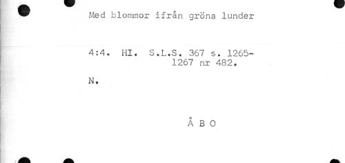 //// : * blommor ifrån gröna lunder //// 4:4. Hl. S.L.S. 367 s. 1265- //// 1267 nr 482. //// N. //// ÅBO ////
