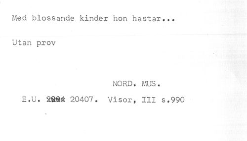 //// Med blossande kinder hon hastar... //// Utan prov //// NORD. f&JS. //// E.u. aaaa 20407. visor, 111 s.990 ////