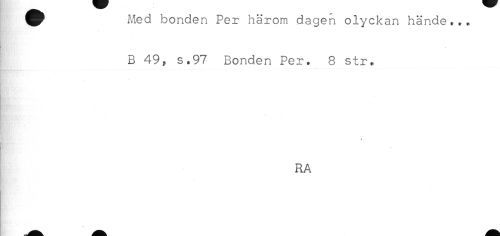//// ^^ Med bonden Per härom dagen olyckan hände... //// . //// B 49, s.97 Bonden Per. 8 str. //// - //// t //// RA ////