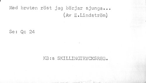 //// Med bruten röst jag börjar sjunga... //// (Av E.Lindström) //// Se: Qc 24 //// KB:s SKILLINGIRYCKSREG. ////