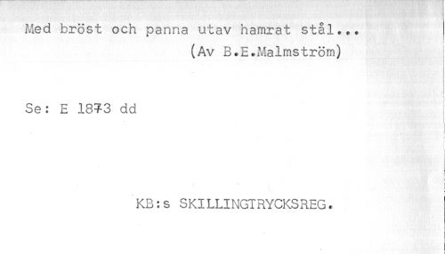 //// Med bröst och panna utav hamrat stål... //// (Av B.E.Malmström) //// j //// Se: E 18?3 dd //// I //// * //// : //// ! //// - //// i //// I ////