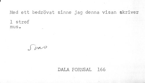 //// Med ett bedrövat sinne jag denna visan skriver //// 1 strof //// mus, //// DALA FOMJSAL 166 ////
