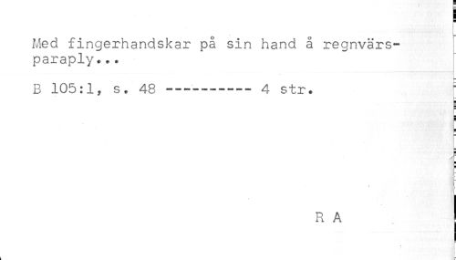 //// Med fingerhandskar på sin hand å regnvärs- //// paraply*.. //// t= //// B 105:1, s. 48-----4 str. = //// H //// * //// * //// . //// = //// j //// R A j //// i //// i* //// L r ////