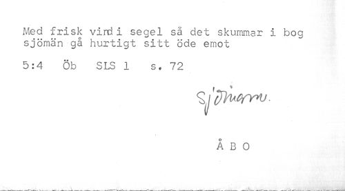 //// Med frisk vind i segel så det skummar i bog //// sjömän gå hurtigt sitt öde emot //// 5:4 Öb SLS 1 s. 72 //// ÅBO ////