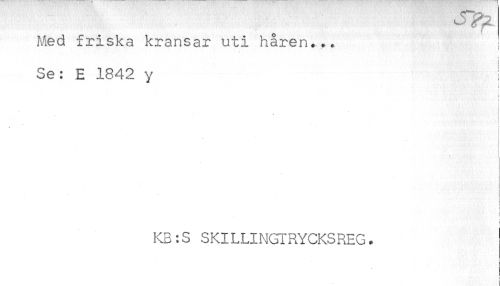 //// Med friska kransar uti haren... //// < //// Se: E 1842 y //// < //// ! //// i //// i //// t //// i //// f //// KB:S SKlLLINGIRYCKS REG. ////