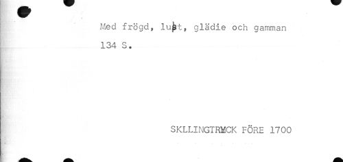 //// fiAed frögd, lu^t, glädie och gamman //// 134 S. //// //// /SKLLINGTRMCK FÖRE 1700 //// HK' ' * ////