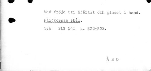 //// Med fröjd uti hjärtat och glaset i hand. //// Flickornas skål. //// 3:6 SLS 541 s. 822-823. //// t //// t' //// ÅBO //// - - //// HB * . ////