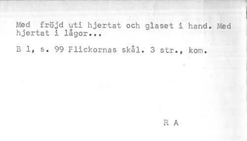 //// Med fröjd uti hjertat och glaset i hand. Med //// hjertat i lågor... //// B 1, s. 99 Flickornas skål. 3 str., kom. //// ! //// f //// ) //// < //// R A ////