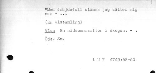 //// "Med fröjdefull stämma jag sätter mig //// ner - *.* //// (En vissamling) //// Visa En midsommarafton i skogen. - . //// Öja. Sm. //// ** //// ^ L U F 4749:58-60 ////