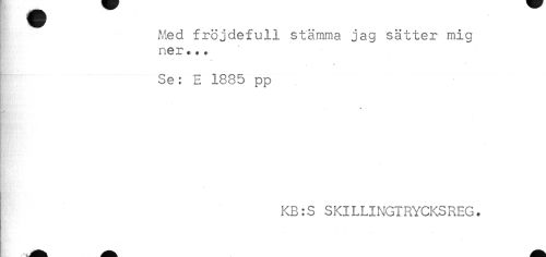 //// Med fröjdefull stämma jag sätter mig //// ner... //// Se: E 1885 pp //// * //// k //// KB:S SKILLINGIRYCKSREG. ////