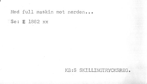 //// Med full maskin mot norden... //// Se: E 1882 xx //// KB:S SKILLINGIRYCKSREG. ////