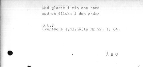 //// Med glaset i min ena hand //// med en flicka i den andra //// * //// 3:6.? //// Svenssons saml.häfte Nr 27. s. 64. ////