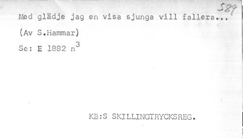 //// Med glädje jag en visa sjunga vill fallera... //// (Av S.Hammar) //// Se: E 1882 n^ //// * //// - //// t- //// KB:S SKILLINGTRYCKSREG. //// < //// ! //// i ////