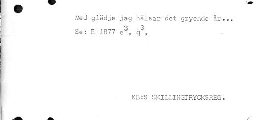 //// Med glädje jag hälsar det gryende år... //// j Se: E 1877 e^, q", //// KB:S SKILLINGIRYCKSREG. //// . ////