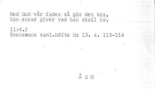 //// Med Gud vår fader så gör det bra, //// han envar giver vad han skall ha. //// 11:4.? //// Svenseons saml.häfte Nr 13. s. 113-114 j //// * //// t ////