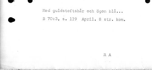 //// ^ Med guldstoftshår och ögon blå... //// ^ B 70:3, s, 119 April. 8 str. kom. //// * //// R A //// L......_,. ////