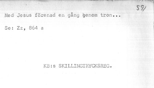 //// Med Jesus förenad en gång igenom tron... //// I //// Se: Zz, 864 a //// KB:s SKILLINGIRYCKSREG. ////