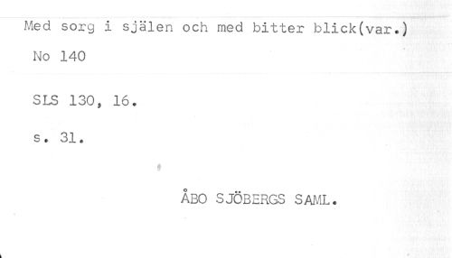 //// Med sorg i själen och med bitter blick(var.) //// No 140 //// SLS 130, 16. //// s. 31. //// ÅBO SJÖBERGS SAML. ////