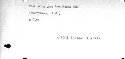 //// Med sorg jag besjunga går //// (Mattsson, 0*W*) //// $ //// s.128 //// H-FORS SKILL.- TR.KAT. ////