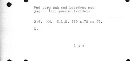 //// Med sorg och med bedrövat mod //// jag nu till pennan skrider. //// 2:4. KN. S.L.S. 330 s.78 nr 57. //// N. //// ÅBO ////