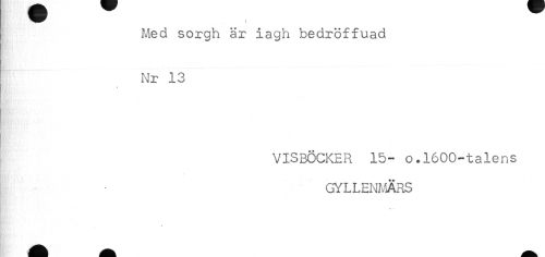 //// Med sorgh är iagh bedröffuad //// Nr 13 //// t - //// VISBÖCKER 15- o.l600-talens //// GYLLEmTÄRS ////