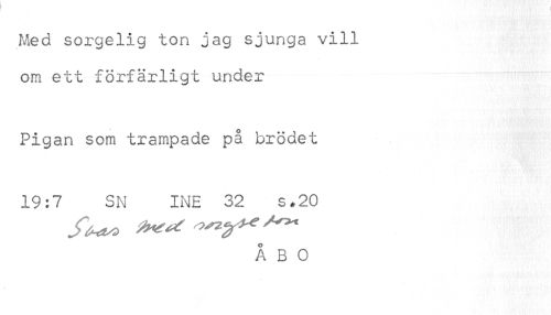 //// Med sorgelig ton jag sjunga vill //// om ett förfärligt under //// Pigan som trampade på brödet //// 19:7 SN INE 32 s,2.0 ////