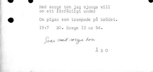 //// ! Med sorge ton jag sjunga vill //// om ett förfärligt under //// g //// { ^^ Om pigan som trampade på brödet. //// j 19:7 BO. Brage 12 nr 5.4. //// t //// ! //// i //// ! ÅBO ////