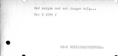 //// PAed sorgse mod och tungan stig... //// Se: N 1844 f //// < //// ^i ' //// KB:S SKILLINGTRYCKSREG. ////